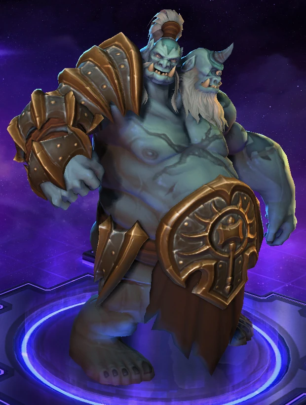 Cho is a Melee Warrior hero from the Warcraft universe, and a part of Cho'gall. This character is unique in that one player controls Cho, and the other Gall.