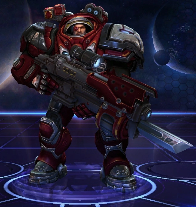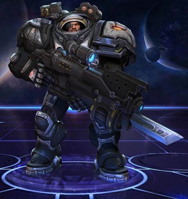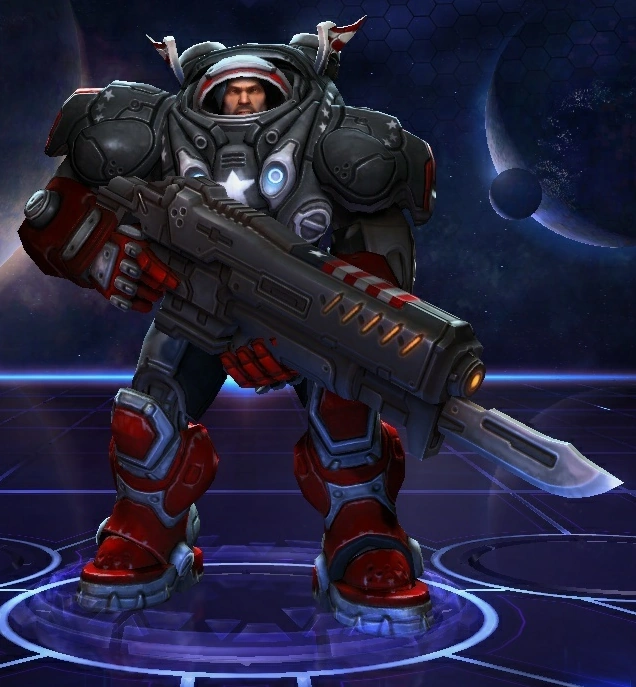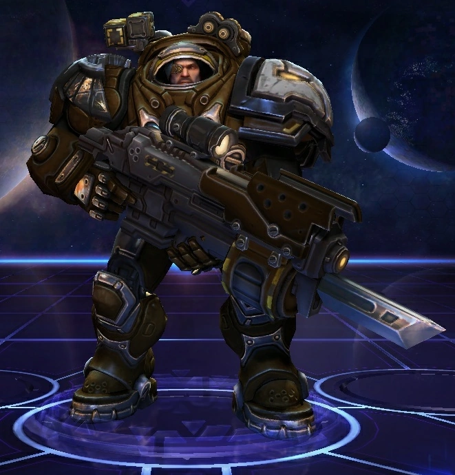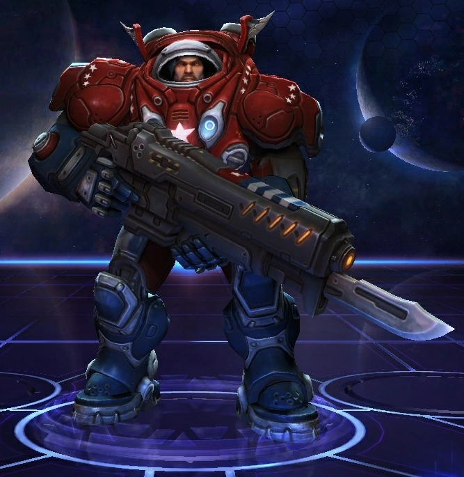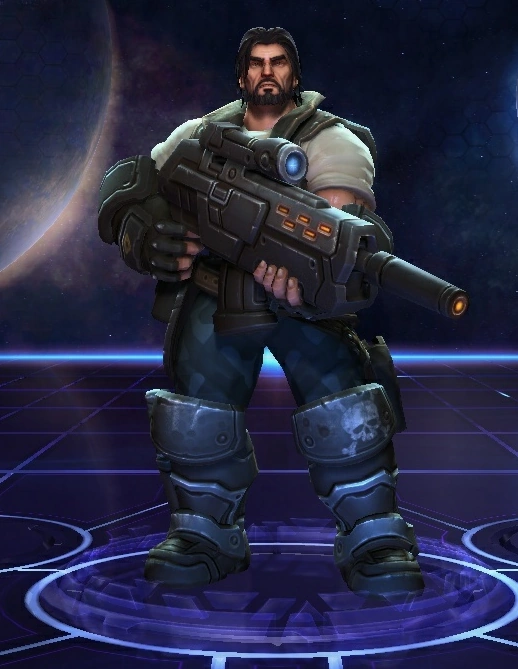 Raynor was conceived within the first two years of the game's development.[1] He appeared in early builds of Heroes of the Storm. He was good at supporting fellow heroes and troops and could bestow bonuses on them. He benefited from intelligence items.