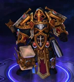 Uther is a resilient Support that can be customized to be a full healer or take on a more damage-dealing role. His trait, Devotion, allows him grant armor to his allies whenever they're healed by any of his Basic Abilities; furthermore, if Uther dies, he returns as a spirit for a short amount of time, allowing him to move and heal allies.